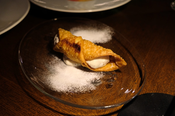 さて大満足の気持ちで迎えるデザート。夫はリコッタチーズを包んだカンノーロ。
