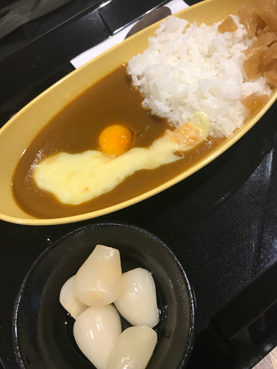 夫はあご出汁カレーにチータマトッピングにらっきょまでつけていました。