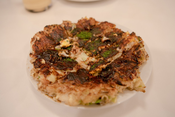 この独特の店内の香りも懐かしい。で、運ばれてきたお好み焼きが冒頭の写真。よく見ると、微妙に夫と私のとでは前者が一回り大きかったのです。何も言わずにそんなサービスがあったとは。