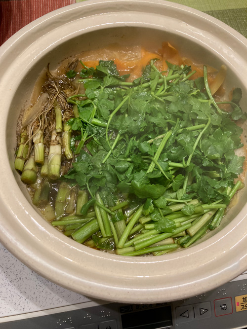 先日夫が買ってきたセリでセリ鍋にしたところとても美味しかったので、また味を占めて再度セリ鍋にしました。スープは、関東のきりっと辛い、でもほんのり甘さもある麺つゆです。