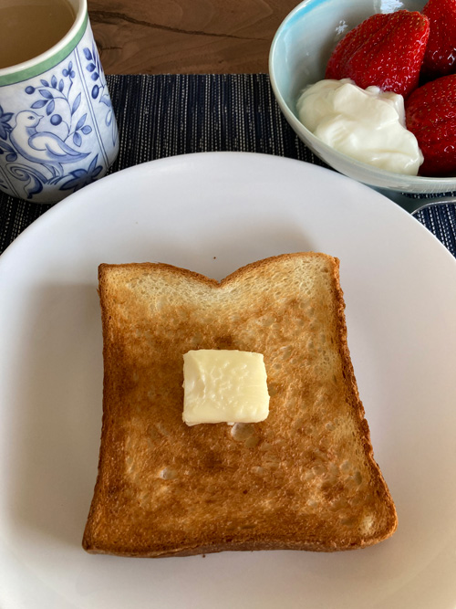 でも結局トーストの待ち時間で一度お皿を洗って拭いて、堂々と真ん中に置くことになりました。これはどこの食パンだったのだろう。