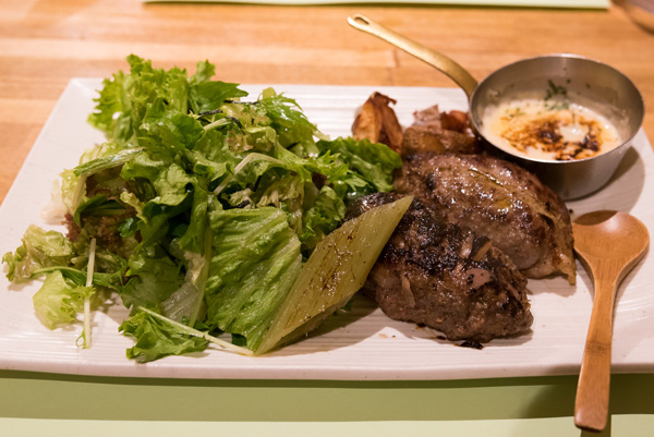 メニュー選びは迷いに迷い、私は日替わりの十勝ハーブ牛とプラスアルファのえぞ鹿のダブルで。