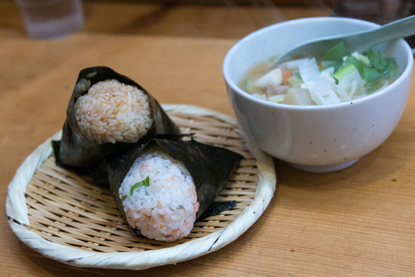 で、タラコと大葉、梅(醤油で)という若干北海道カラーが薄めの注文となってしまいました。それととん汁も添えて。