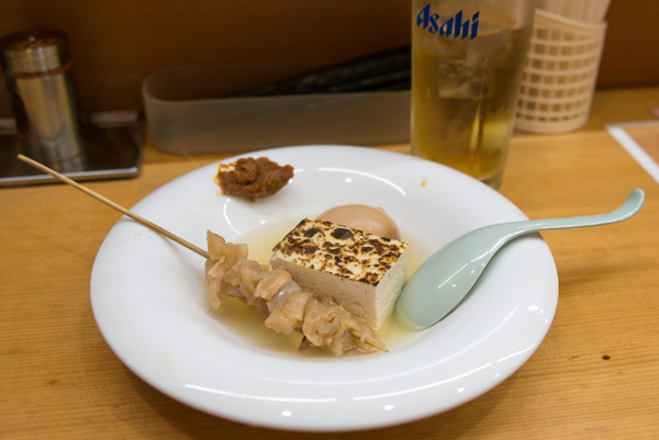 夫はおでんをつまみにまずはビール。みそを付けながら食べるのが美味しそうでした。