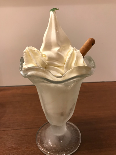 究極のパフェかもしれません。十勝産のソフトクリームと生クリーム。温まった身体に、ちょいとした大きさがちょうどよい。