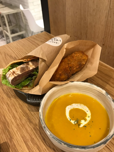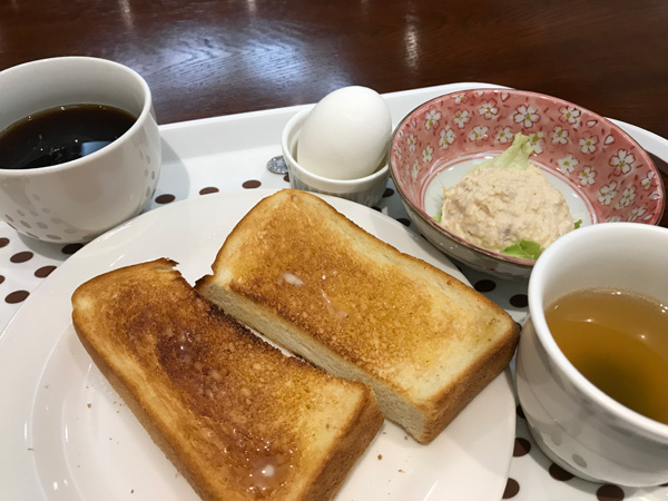 軽食がついていました。チェックイン時に和か洋を選択しておくシステムです。トースターでしっかりと好みに焼き色を付けることができるのがいいな。トースト、スープ、ゆで卵、ツナサラダ、コーヒーのシンプルな朝ごはん。