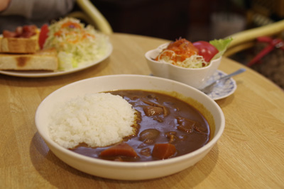 夫は朝カレーセット940円。