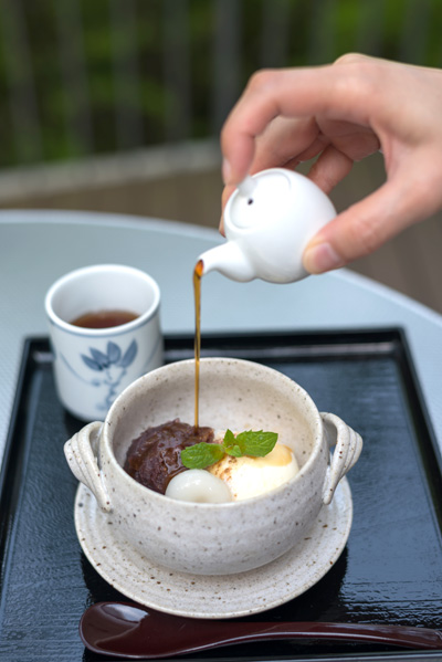 2種類のあずきを茹でて、豆本来の風味を食べ比べられる、工場直営のレストランならではのメニューです。