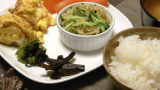 この日のサラダは、かぼちゃと白いんげんのスパイスロースト、トマトと大豆もやしのナムル風サラダ、春キャベツとセロリのエストラゴン風味、ダブルグリーンサラダでした。