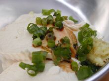 途中買ってもらったざる豆腐。ホントはお醤油なんてつけなくても豆の味がしっかりして美味しい。厚揚げも炙った処を生姜醤油で頂きました。