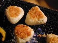 ごはんの締めくくりには、お醤油をたらしながら焼きおにぎりを焼きます。