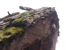年月が経っているせいか、苔むしてたり、草が生えてたりしている屋根。