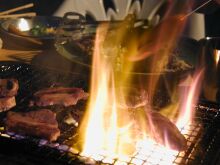 骨付きカルビを焼いてたら、炎が上がった! 何だかそれはそれで盛り上がりますね~。