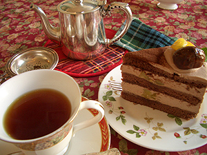 で、秋真っ盛り故にマロン生チョコレートケーキとアッサムティーのケーキセットで1,050円。