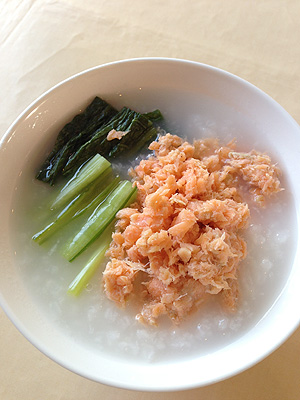 夫は軽い和食でまとめていたのですが、おかゆがあったのが嬉しかったようです。