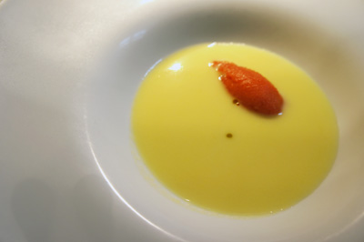 最初はそのままとうもろこしのとてつもなく甘く凝縮されたスープを頂きます。