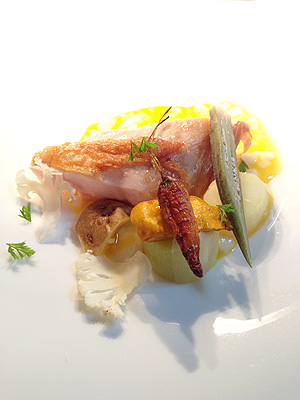メインの「信州ハーブ鶏/62.7℃の卵/トリュフ/地野菜」。