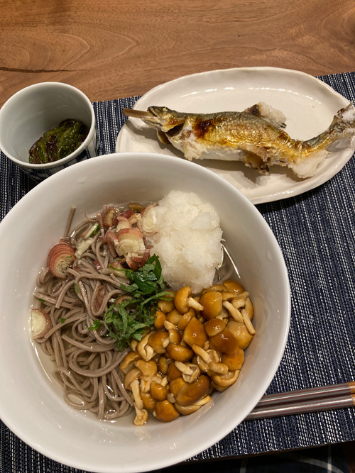 冷たいお蕎麦でつるっと晩御飯。お昼ががっつりだったので、食べやすいもので構成しました。大根おろしは、辛み大根。八百屋さんで夫が4本くらい買ってきたので、急に辛み大根での大根おろし三昧の日々が始まりました。