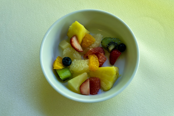 バターとはちみつと杏ジャムが添えられていて、どの組み合わせにしても完全なる美味しさ。デザートの果物も美しい。