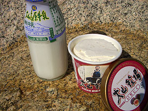 彼は、大山の濃厚な牛乳、私はイチジク入りのバニラアイスで、ちょいと休憩。