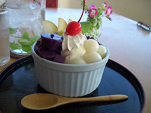 紫芋のあんみつ450円。