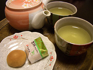 まずはお茶とお菓子で一服。
