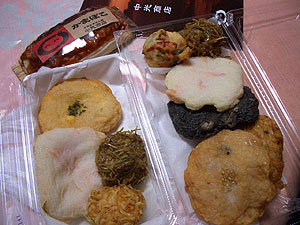 9時の開店まもなく、お邪魔して二人で感動しながら、あれこれ味見してたら、ご主人が「熱くてまだ味が美味しいか判らんけど」とキャベツとちりめんじゃこのボール天を持ってきてくれました。はふはふ、美味しいいっすよ。