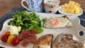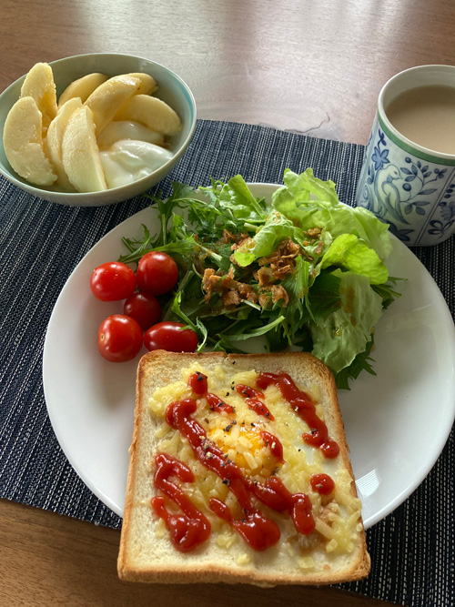 夫は健康診断のため朝食が不要なので、私は連日のこのメニューを楽しみました。このパンの耳、また欲しいなあと思っています。出会えるといいな。