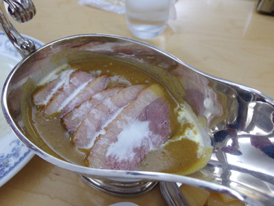 夫が鴨を選んだので、私はビーフにしました。