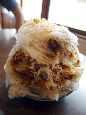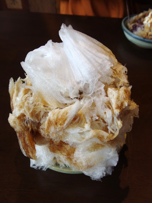 日光に来たら日光の天然氷のかき氷を食べないことには始まらないらしいのと、百年ライスカレーで結構身体がホットになったのと、またお店の中も暖かかったというのもあって、10月も下旬ではありますが私もかき氷を選びました。