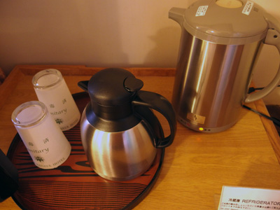 テレビの横には沸かしたお湯が入ったポットと、氷水が入ったポットが用意されていて、こういう心遣いが嬉しいなあと思いました。