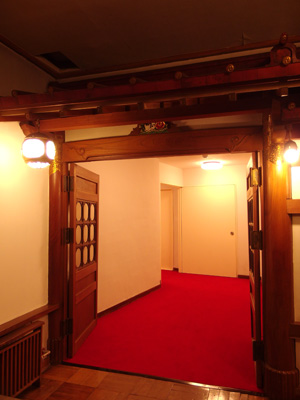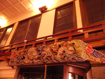 和風の造りにカーペット敷だったりシャンデリアがぶら下がっていたり。