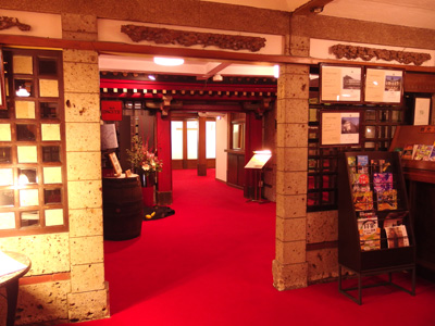 フロントの向かって左から奥を。大谷石を外観も内観もふんだんに使っています。