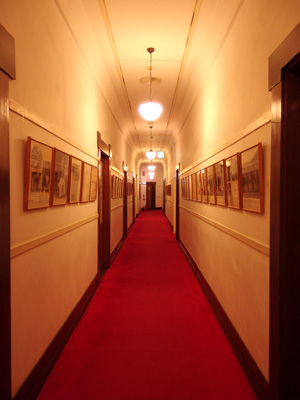 2階には金谷ホテルの歴史が詰まったギャラリーの廊下も。