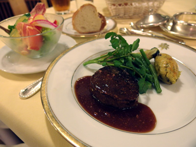 牛フィレ肉のステーキ 赤ワインとフォアグラのソース。