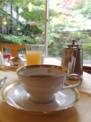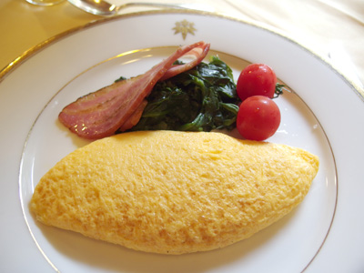 さて朝食は、ジュースの選択、卵料理と肉料理の選択があり、きっとどれにしてもおいしいだろうなあと迷いつつ、ベーコンとオムレツにしました。