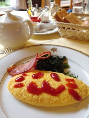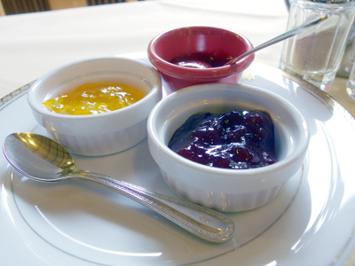 ジャムやケチャップはこのようにセッティングされており、オムレツにケチャップを掛けたのですが、今ひとつ綺麗にできなかったので、私のはプレーンな状態のみ載せました。