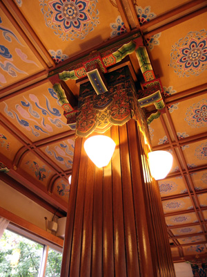 柱や天井の装飾も見事で、ディナーの時は暗くてあまり撮れなかったため朝食の時に。