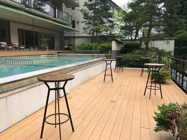 前日はプールで遊んでいる方々がいたのですが、この時間は誰もいなかったのでテラスへ降りてみました。