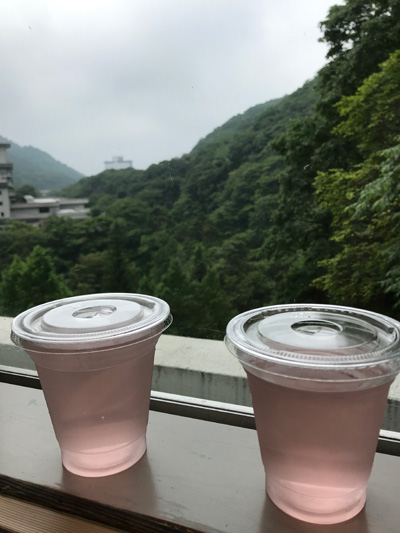 今朝になって入れ替わった露天風呂、まずは鹿のぞきの寝湯に行き、これはいいなあと思ってから、自然風呂へ。こちらはまあ一回入ればいいかな。で、大浴場に行き、風呂上がりにちょうど7時のオープン時間になったのでくつろぎSalonで飲み物を。