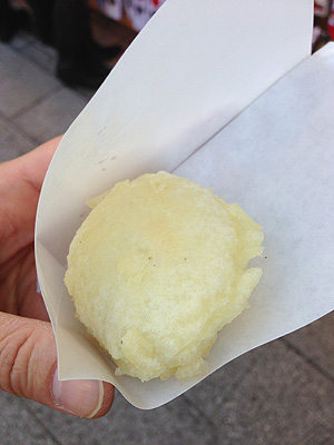 夫の母は民芸的なお土産屋さんに何軒か吸い込まれるように入っていきまして、その間にさくっとあげまんじゅうプレーン1個80円を購入して、熱い内にハフハフとつまみ食い。