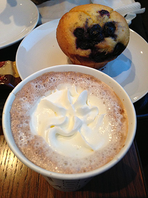 まずは私はブルーベリー&クリームチーズのマフィンと、カフェモカでホッと一息。