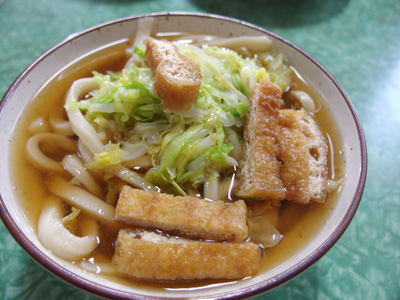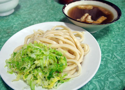 元祖キャベツうどんのお店で、メニューは温かいのと冷たいのと2択、私は冒頭の温かいのを。