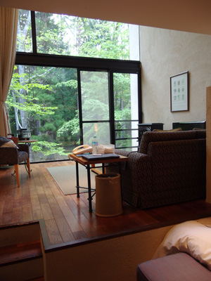 フロント前で一旦車を止めて、チェックイン手続きをし、私達は敷地の一番奥にあるフォレストヴィレッジに宿泊することになったので、更に奥にある駐車場へ車を止めに行きました。
