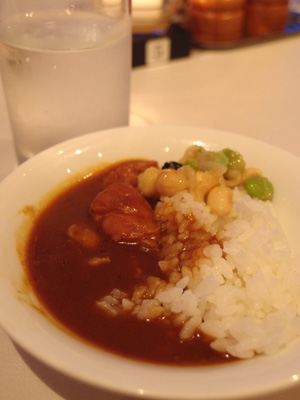 チキンカレーは甘かったかな。サラダの豆をトッピング。