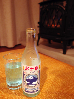 熱めのお風呂でサッと入り、部屋に戻って富士山サイダーを。