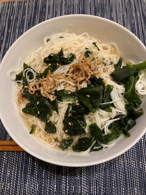夫が外出しているので、晩御飯はこれで手軽にしました。冒頭の写真は梅じゃこで、乾燥ワカメを大量に追加しました。手軽でさっぱりと食べられてよかったです。後日、鯛山椒も同様に乾燥ワカメを追加して食べたため見た目が殆ど似ていて記録はしませんでした。