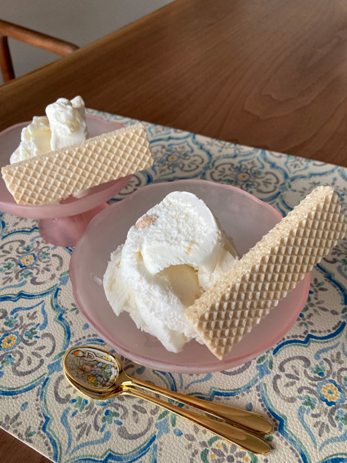 シェアしたのでちょうどあったウェハースも添えて。
