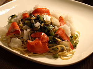 大根おろしとスモークサーモンを和えた和風の味付け。