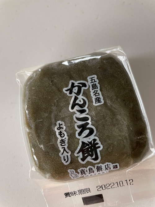 昔から叔母に時々送って貰って知ったお餅で、大好きな五島の名産です。いつもはかまぼこ型になっていて、1㎝くらいのスライスにしてトースターでこんがり焼いて熱々を食べるのがたまりません。